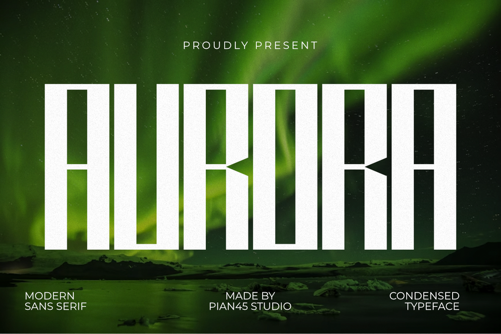 Aurora is a striking Modern Condensed Sans Serif typeface, designed for maximum impact and sleek elegance. Its ultra-narrow and clean structure makes it perfect for bold, monumental headlines, luxury branding, modern logos, high-end editorial designs, and minimal posters. The unique character cutouts give it a memorable, futuristic, and sophisticated edge, ideal for any project requiring a strong, geometric display font. Aurora delivers a powerful, clean aesthetic for contemporary branding and high-fashion visuals.