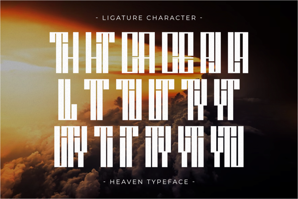 Heaven is a striking, assertive Ultra Condensed Sans Serif font defined by its extreme vertical reach and unique, angular, and clean geometric cuts. Designed for maximum visual drama, it's the perfect modern display typeface for high-end luxury branding, architectural visuals, futuristic posters, and bold, monumental headlines. This striking all-caps font includes subtle ligatures for a customized, elite aesthetic, ensuring a strong, professional, and instantly memorable visual identity for digital and print media.