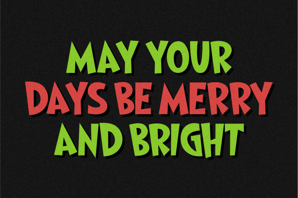 Single Grinch is a wonderfully bold and quirky Christmas Display Typeface that is full of character and holiday fun. Its thick, slanted, and slightly uneven structure, combined with a striking shadow effect, makes it the perfect font for fun holiday apparel, playful Christmas posters, children's designs, and any project needing a whimsical and memorable festive touch for December marketing.