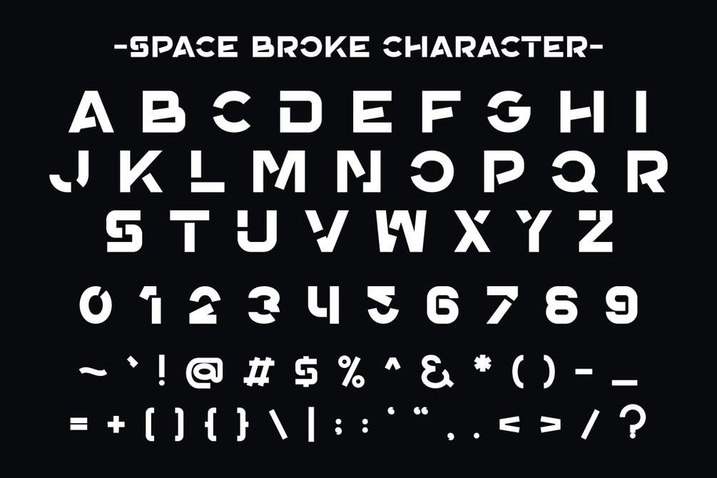 Space Broke is a modern futuristic display font with an edgy twist. This font breaks the boundaries of traditional typography with its bold and innovative style, perfectly capturing the essence of the future and outer space.