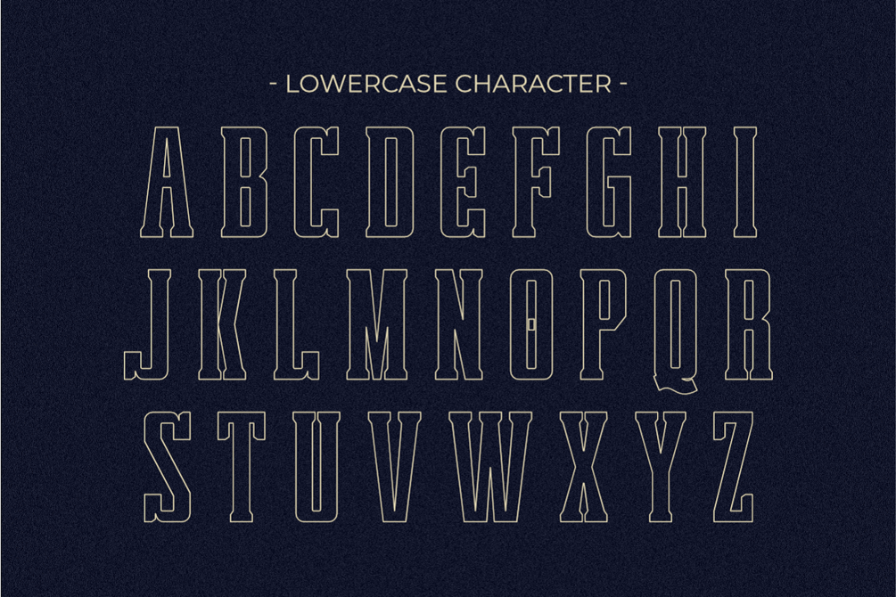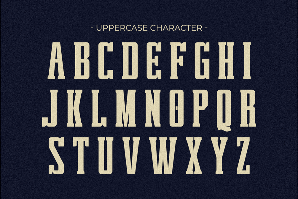 Varsity Holiday is a vintage condensed slab serif font inspired by cowboy western style and retro varsity aesthetics. Perfect for bold headlines, sports posters, rodeo events, old west branding, rustic logos, classic signage, whiskey labels, retro apparel designs, western movie titles, vintage packaging, Americana themes, strong editorial layouts, and nostalgic advertising. This typeface comes in Regular and Outline styles, making it versatile for both modern retro projects and authentic vintage designs. Ideal for designers who want a rugged, bold, and timeless slab serif look.